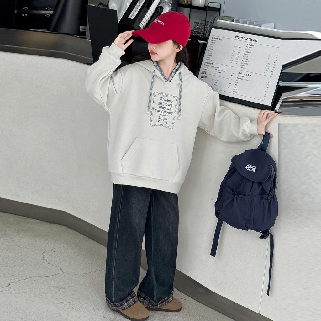 This sporty two-piece set is the perfect blend of style and comfort for girls ready to take on the day. The set features a stylish hoodie with long sleeves, crafted from high-quality cotton material to ensure softness and durability. Paired with matching jeans, this ensemble provides a trendy yet relaxed fit, ideal for active outings or casual wear. The breathable cotton material ensures ease of movement while keeping her comfortable and chic all season long.