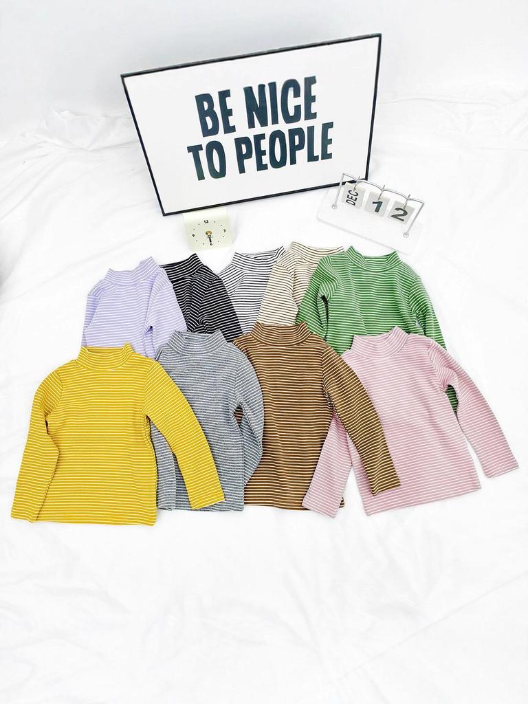 This cozy long sleeve T-shirt is perfect for both kids and parents, featuring a stylish striped design. Crafted from soft, high-quality cotton, it ensures warmth and comfort during the cooler autumn and winter months. The semi-high collar offers additional coverage, while the elastic layer enhances the fit, making it a practical and fashionable choice for family outings or relaxed days at home.