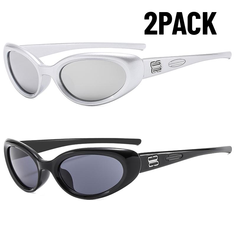 2PACK Fashion Candy Colour Retro Cat Eye Oval Sunglasses Black Small Frame Y2K UV Protective Sunglasses Outdoor Party Glasses
