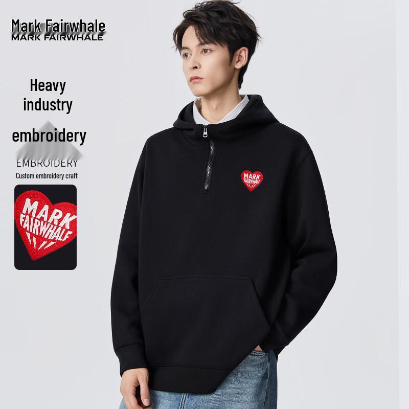 Mark Hua Fei Men's Embroidered Half-Zip Hooded Sweatshirt