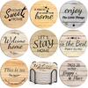 Set of 6 2D Motivational Words Theme Pattern Art Coasters Round Wooden Heat Resistant Non-Slip Home Decor Gift Multifunctional