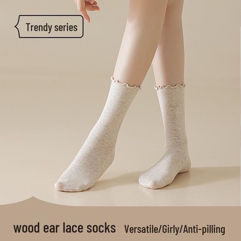 Women's Mid-Calf Lace Pile Socks - Korean Wood Ear Edge, Perfect for Loafers, Y2K Style