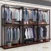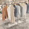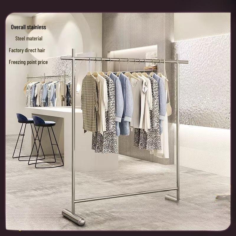 Clothing Store Display Rack: Stainless Steel Minimalist Floor-Standing Rack for Men's, Women's, and Children's Apparel.