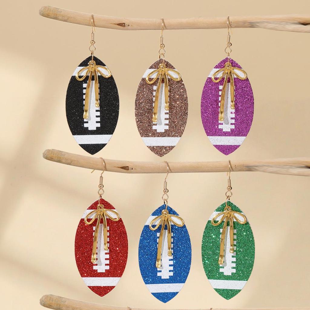 European-American Super Bowl Sporty PU Leather Football Earrings with Alloy Bowknot