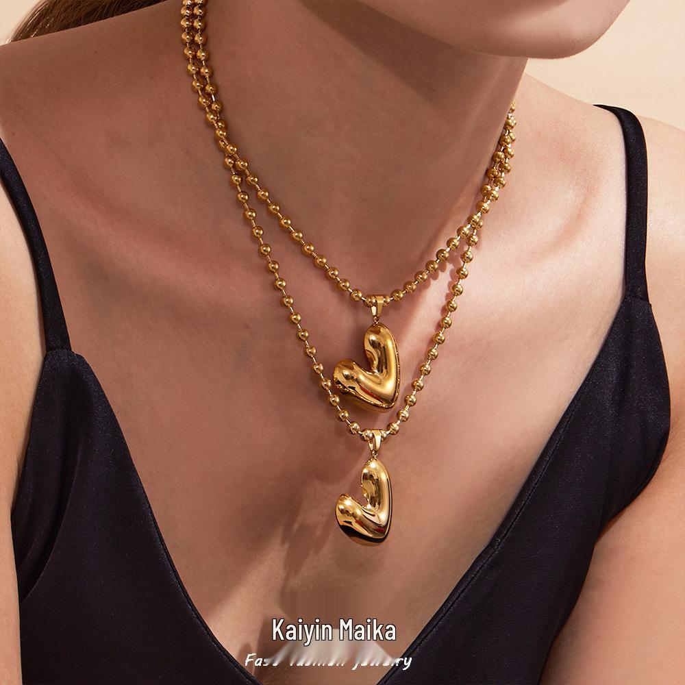 Oumayka 18K Gold-Plated Stainless Steel Heart & Round Bead Necklace