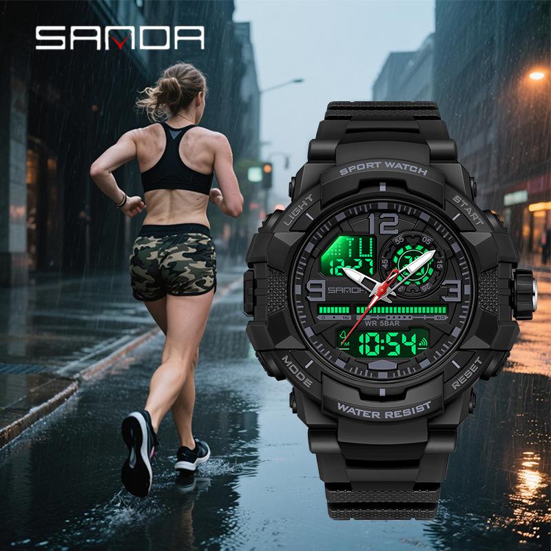 Sanda Çok Fonksiyonlu Kronograf Su Geçirmez Spor Saati Gençler için Çift Ekranlı