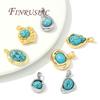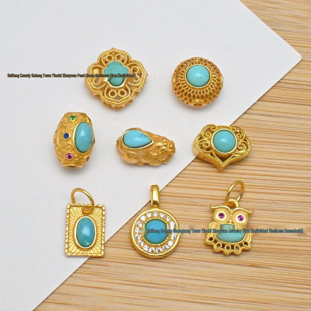S925 Sterling Silver Gold-Inlaid Raw Turquoise Pendant Spacer Beads