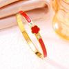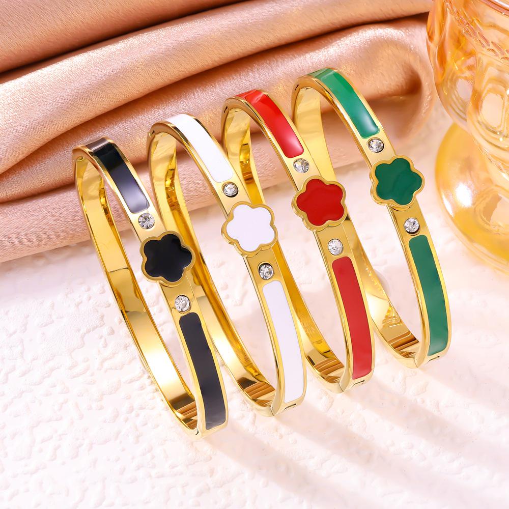 Lucky Five-Leaf Flower Titanium Steel Bracelet with Enamel & Diamond Accents
