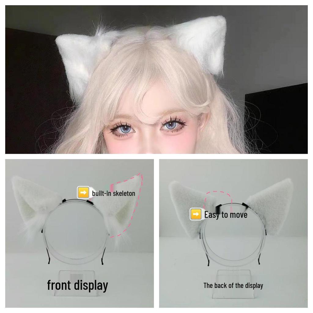 Japanese Style Plush Cat Fox Ears Headband for Women - Cute Animal Hair Clip Hairpin
