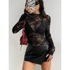 The New Elegant and Fashionable Women's Lace Fungus Trim Slim Long-sleeved Top for Spring