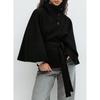 Fashion Solid Women's Lace Up Cape Coats Loose Stand Collar Batwing Sleeve Button Leisure Jackets Autumn Streetwear