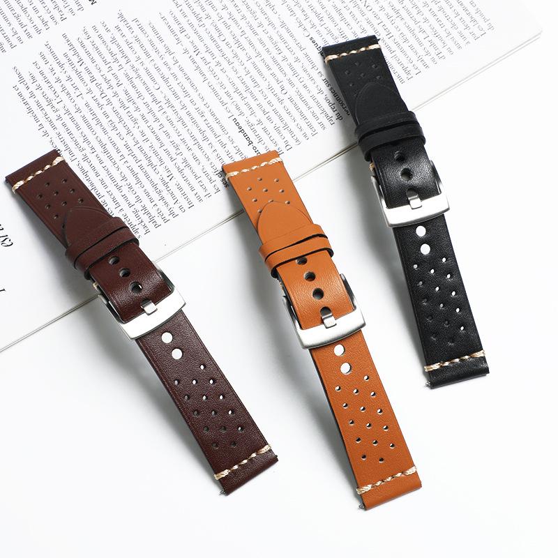 Men's Genuine Leather Watch Strap - Breathable Double-Sided Top Layer Cowhide with Interchangeable Ears