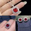 Popular Red Tourmaline Open Ring & Square Stud Earrings Set for Women