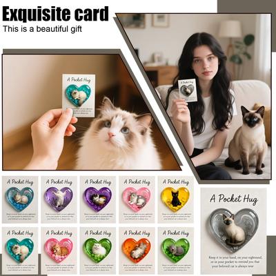 Kedi Anı Cep Kucaklaması İlham Verici Kart ile Duygusal Destek Aşk Kalp Şeklinde Kedi Cep Jetonu Dekorasyonu Kedi Sahipleri için Hatıra Hediye
