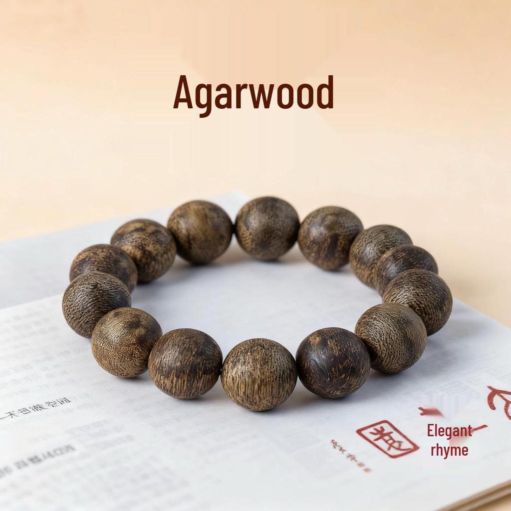 Authentic Vietnamese Agarwood Beads Bracelet for Men and Women – Hoi An Wenwan Style with Fragrant Wild Wood