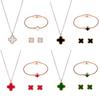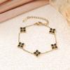 Colorful Four-Leaf Clover Titanium Steel Jewelry Set: Bracelet, Necklace & Stud Earrings
