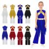 Eldivenli Çocuk Dans Mayosu Mock Yaka Kesik Sırt Parıltılı Payetler Renk Bloklu Performans Kıyafeti