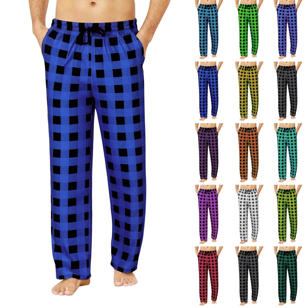 Men's Drawstring Plaid Print Pants - Long Casual Trousers With Belted Pockets