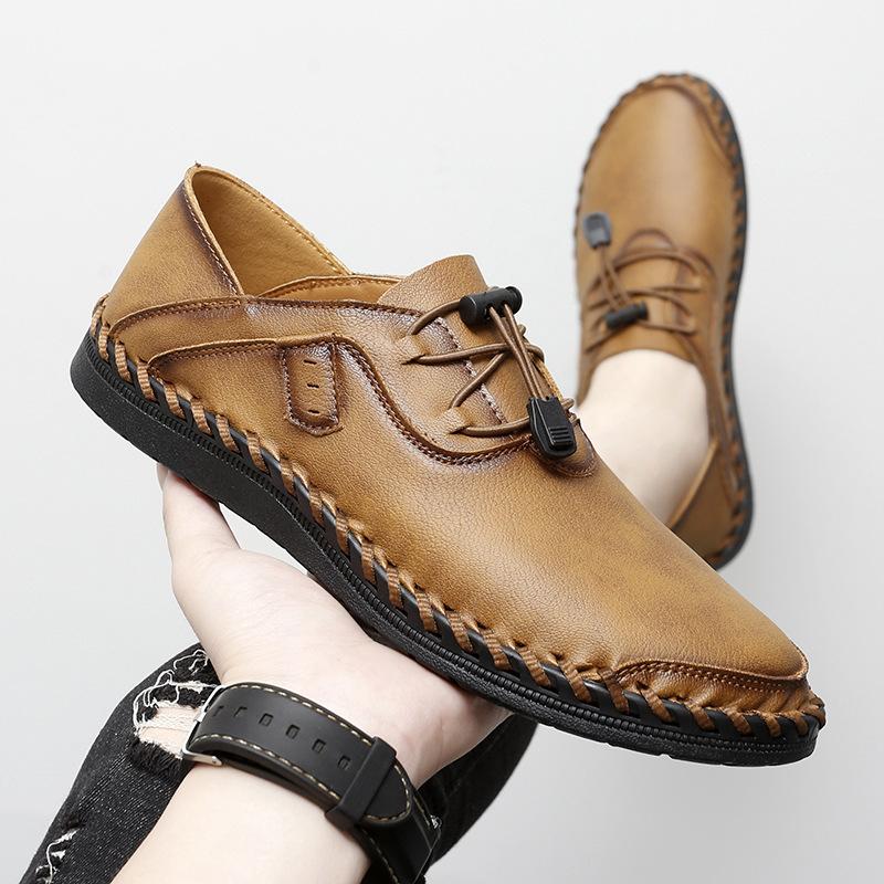 Men's spring and autumn new low-top Doudou shoes fashion British loafers large size hand-stitched casual leather shoes