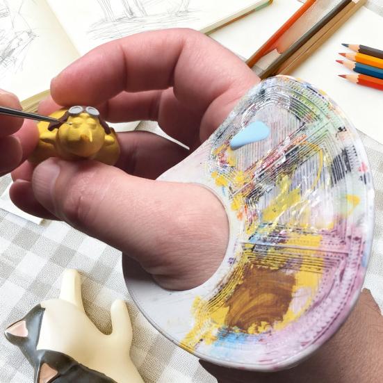 Akrilik Boya Paleti El Tipi Renk Karıştırma Tepsisi Taşınabilir Yelpaze Şeklinde Oluklu Tasarım Sanatçılar Öğrenciler İçin Mini Renk Paleti