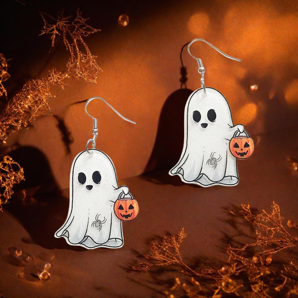 Halloween Cat and Ghost Acrylic Earrings - Quirky Pumpkin Design for Holiday Parties