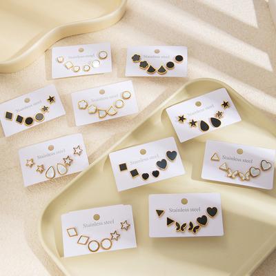 Stainless Steel Heart, Star, Moon, and Flower Design Titanium Earrings for Women – Trendy, Non-Fading