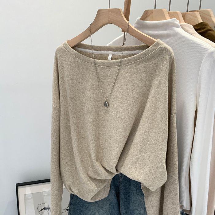 This Women's Oatmeal Long-Sleeve T-Shirt is designed for comfort and style in the cooler autumn months. Crafted from skin-friendly polyester, the solid-patterned shirt offers a brushed finish for a soft touch against your skin. Its relaxed fit provides ease of movement, while the long sleeves ensure warmth and versatility, making it an ideal choice for layering or wearing on its own in transitional weather.