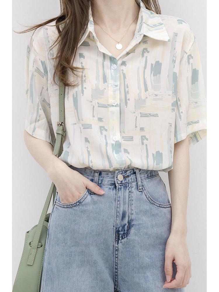Experience the perfect blend of style and functionality with this unique short sleeve shirt for women. Inspired by the timeless elegance of Hong Kong ink wash artistry, the shirt is crafted from premium xiangyunsha material, known for its lightweight and breathable properties. Designed with a loose fit and featuring a chic turn-down collar, it offers both comfort and a sophisticated look. Ideal for sun protection during warm weather, this shirt is a versatile addition to any wardrobe, effortlessly combining traditional charm with modern fashion.