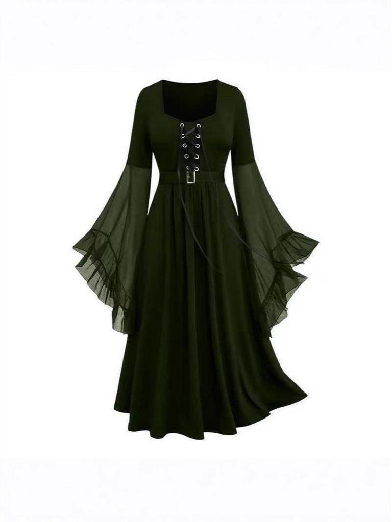 2024 Women's Halloween Witch Lace-Up Swing Dress