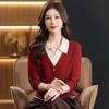 Women's Color Block Knit Sweater with Lapel and Faux Two-Piece Design