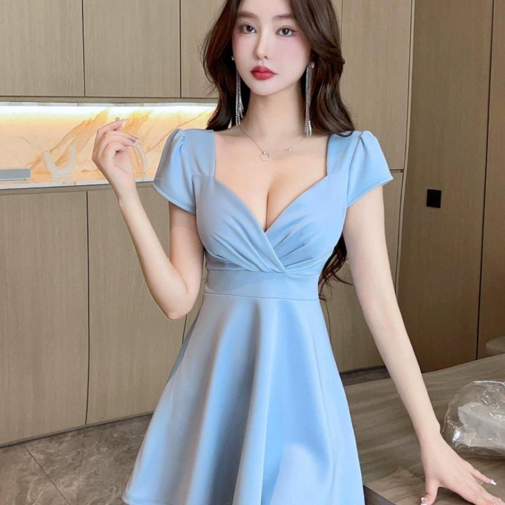 Women's Sexy Backless V-Neck Slimming A-Line Dress - Short-Sleeved, Low-Cut Skirt for Foot Massage Technicians