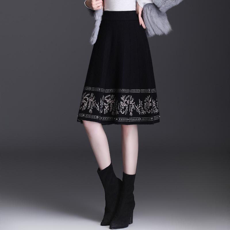 Ethnic Style Floral Knit A-line Midi Skirt - High Waist Autumn/Winter 2025