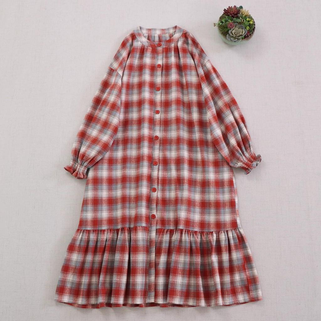 2025 Autumn Plaid Round Neck Long Sleeve Mori Girl Dress - Loose and Versatile Cardigan Style