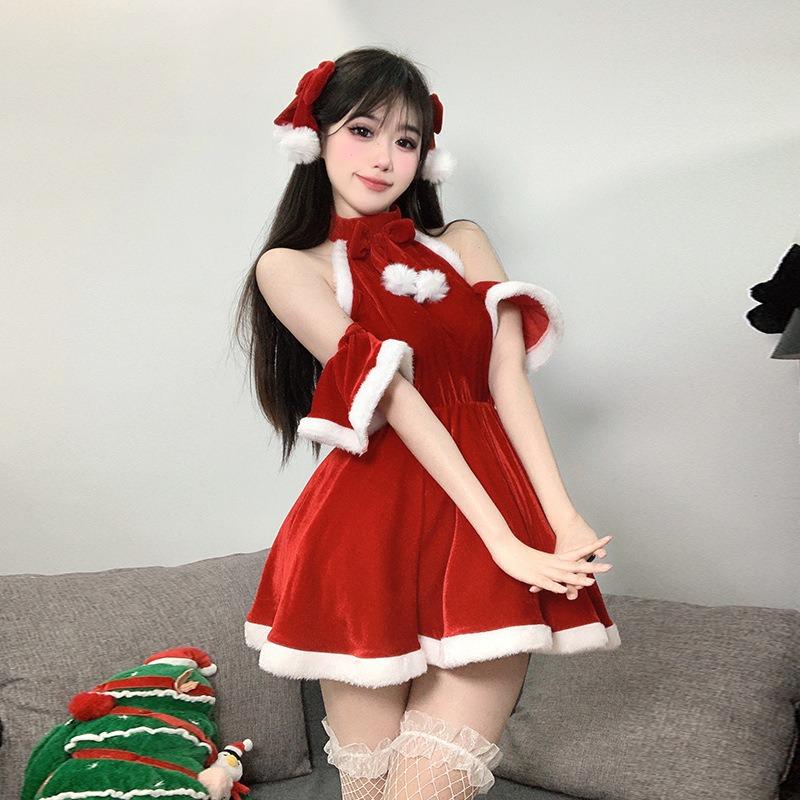 Sexy lingerie sexy halter velvet perspective uniform passion cute pure desire christmas flirting uniform 1