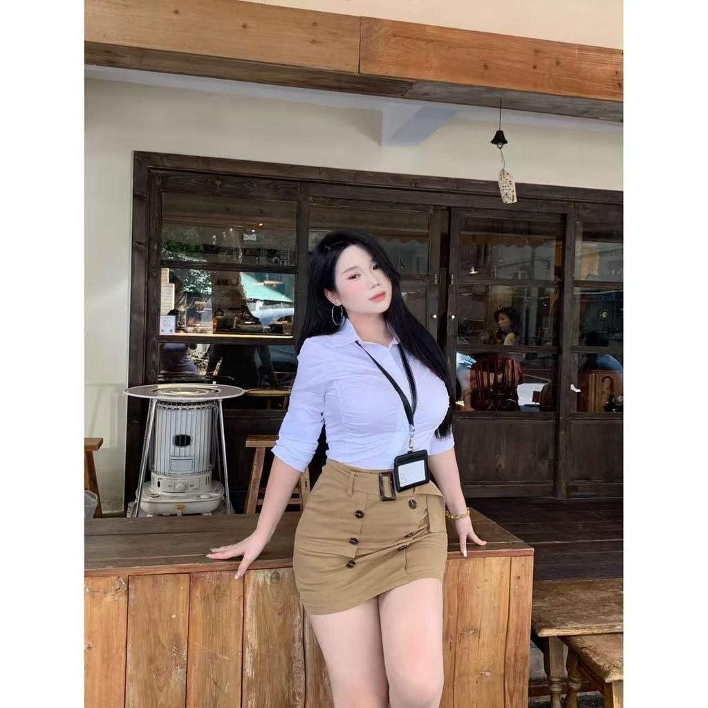 "Pretty Sister" Elegant White Slim-Fit Shirt and Hip-Hugging Skirt Set for Women