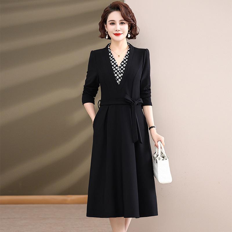 Discover the perfect blend of elegance and comfort with this long-sleeve dress designed for middle-aged women. Featuring a chic faux two-piece design, this dress offers a slimming silhouette that flatters any figure. Crafted from high-quality chiffon, it provides a lightweight and breathable feel, making it ideal for both spring and autumn occasions. Whether you're attending a casual gathering or a special event, this dress promises to enhance your wardrobe with its timeless style and sophisticated look.