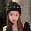 Korean Style Highlight Letters Black Knitted Baotou Hat for Women Showing Face Small Versatile Pile Hat Big Head Circumference Pullover Cold Hat