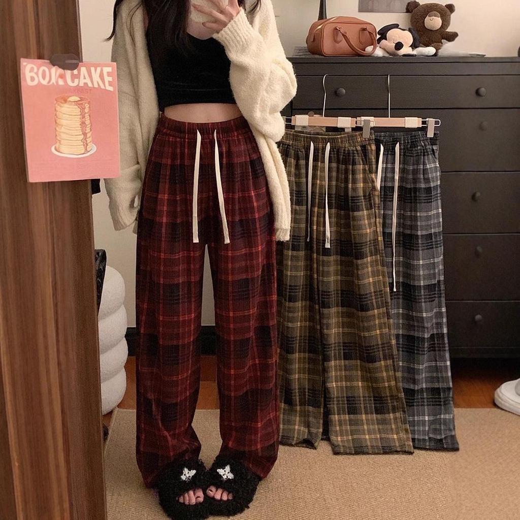 Elevate your wardrobe with these chic Korean-style high waist plaid wide-leg pants, perfect for adding a retro flair to your spring and autumn outfits. Designed to be both loose and slimming, these pants provide a comfortable yet flattering fit for any occasion. Crafted from high-quality polyester fiber, they ensure durability and a soft, smooth feel. Whether you're going for a casual day out or a sophisticated evening look, these versatile pants are sure to make a statement.