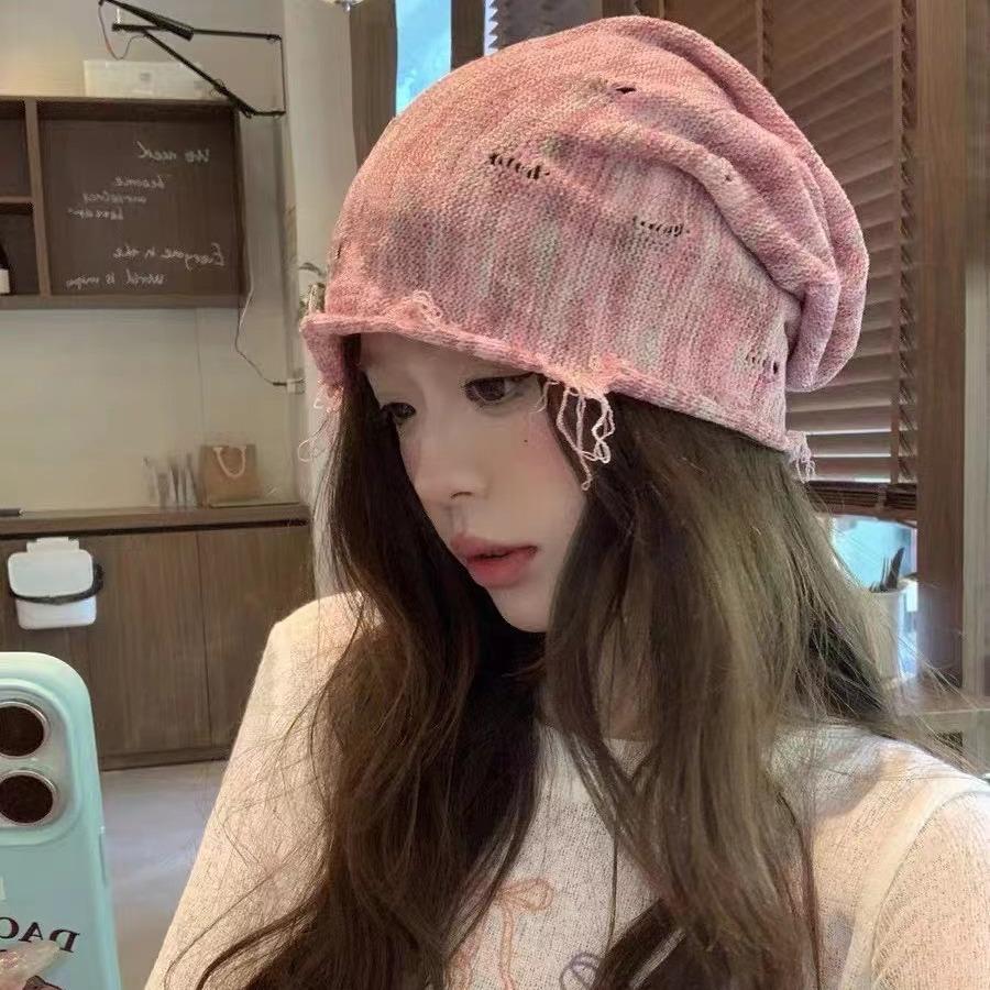 Personalized Distressed Hole Knitted Hat for Women in Autumn Niche Pile Hat Japanese Wasteland Air Cooled Hat Warm Pullover Hat