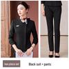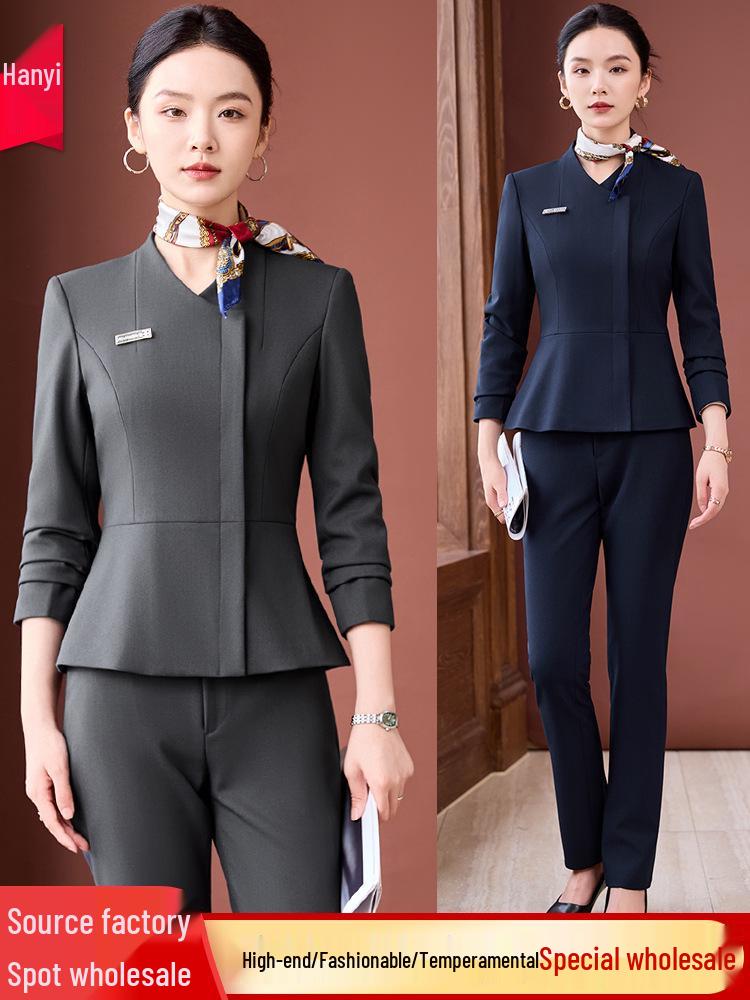 This refined and sophisticated business suit is designed specifically for jewelry store professionals who value style and comfort. Made from high-quality polyester, the suit offers a sleek, slimming fit that enhances the wearer's silhouette. It features exquisite tailoring and attention to detail, perfect for creating a polished and professional appearance. Whether you're meeting with clients or managing your boutique, this elegant suit ensures you'll make a lasting impression.