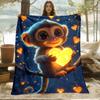 Monkey And Glowing Hearts HD Print Blanket - Lightweight Flannel Throw For Sofa. Bed.Travel Livingroom.Office.Couch And Bed -