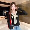 Korean Style Bow Embroidery Long Sleeve Slim-Fit Rayon T-Shirt for Women - Autumn Collection