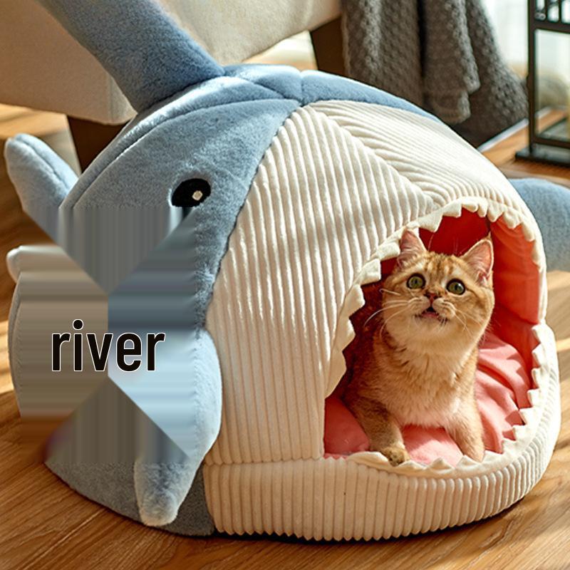 Shark-Shaped Cat and Dog Nest: Cozy, Enclosed, All-Season Comfort and Security