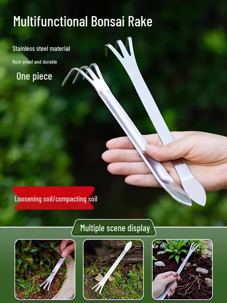 Stainless Steel Three-Pronged Bonsai Rake for Soil Loosening & Garden Planting
