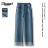 Sibaishe Women's Retro High-Waist Washed Straight Jeans
