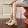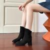 Short boots women's autumn and winter new thick heel thin boots square head small bare boots high heel nude elastic boots children