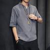 Erkek Pamuk Keten Gömlek Erkek Yarım Kollu İnce Mandarin Yaka Gömlek Çin Tarzı Camisa Masculina