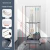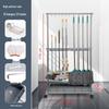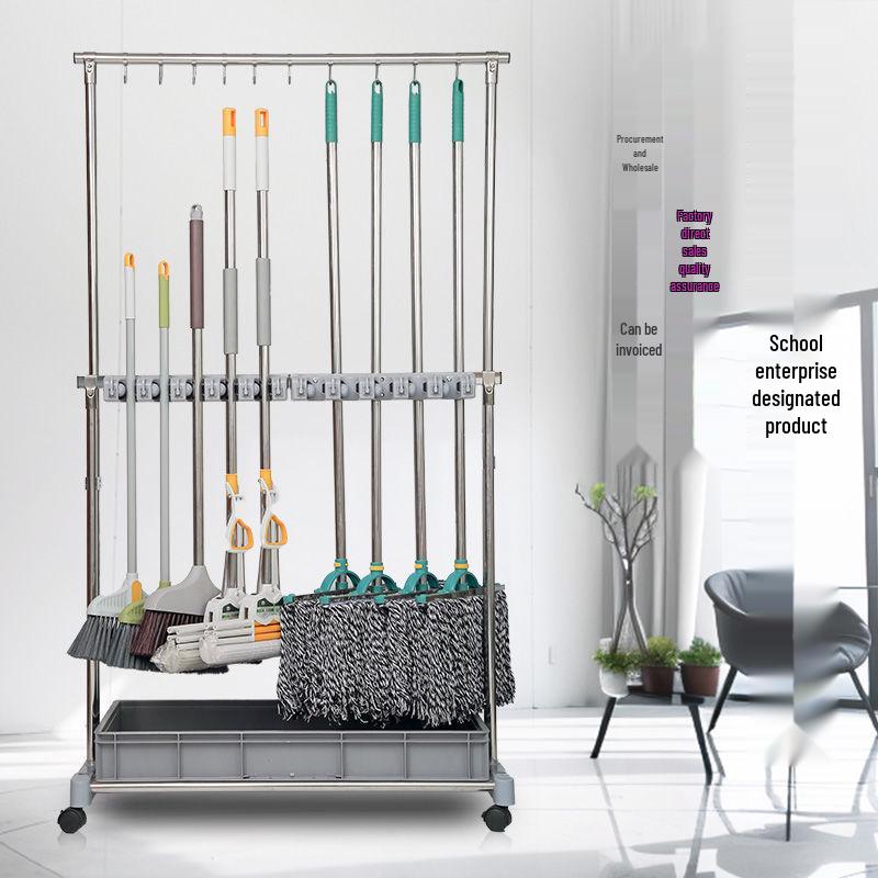 Movable Stainless Steel Mop Storage Rack with Hooks for Floor-Standing Draining in Schools and Factories