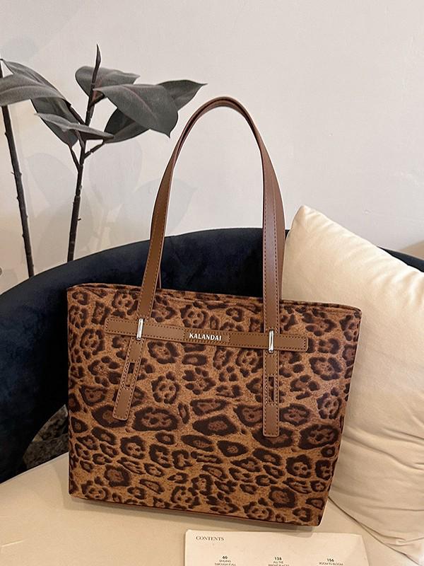 2025 New Leopard Print Women's Large Capacity Frosted Shoulder Tote - Versatile Retro Student Bag for Autumn/Winter