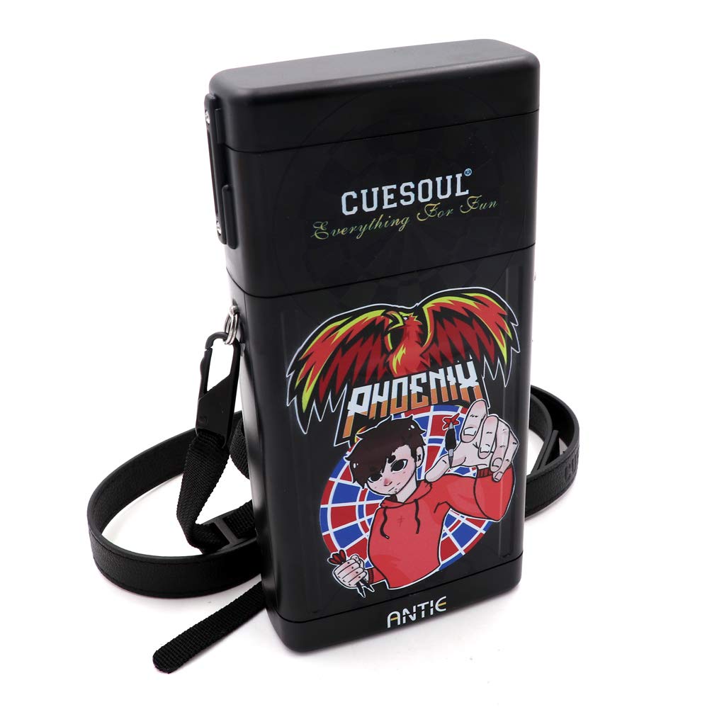 The perfectly designed interior and pop-up drawer hold all the small accessories and cards you need for your dart game. The spring-loaded dart contact points inside the box prevent darts from shaking, allowing you to store a variety of dart sizes. It also accommodates all types of dart flights, including AK4, AK5, AK6, and AK8.